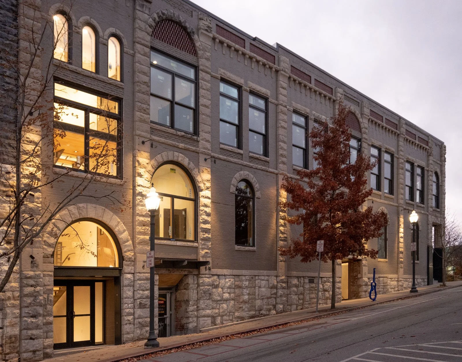 Located on the historic Fayetteville Square, the circa 1898 building at 26 W. Center Street was revealed after hiding sixty-five years behind a metal screen. (Watch our video below to see the transformation). At the start of restoration, the building was obscured, severely dilapidated and out of code compliance. This complex project overlapped several preservation categories including to preserve, restore, reconstruct, and rehabilitate. Preserve Arkansas awarded it the Excellence in Preservation through Restoration Honorable Mention in 2021.