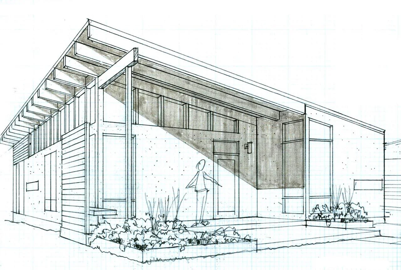This two-bedroom passive solar residence is Energy Star 5+ certified. Characterized by two shed roofs, the resulting wing-like form stands dramatically on a narrow lot among quiet ranch homes near the Fayetteville, Arkansas Washington-Willow Historic District.